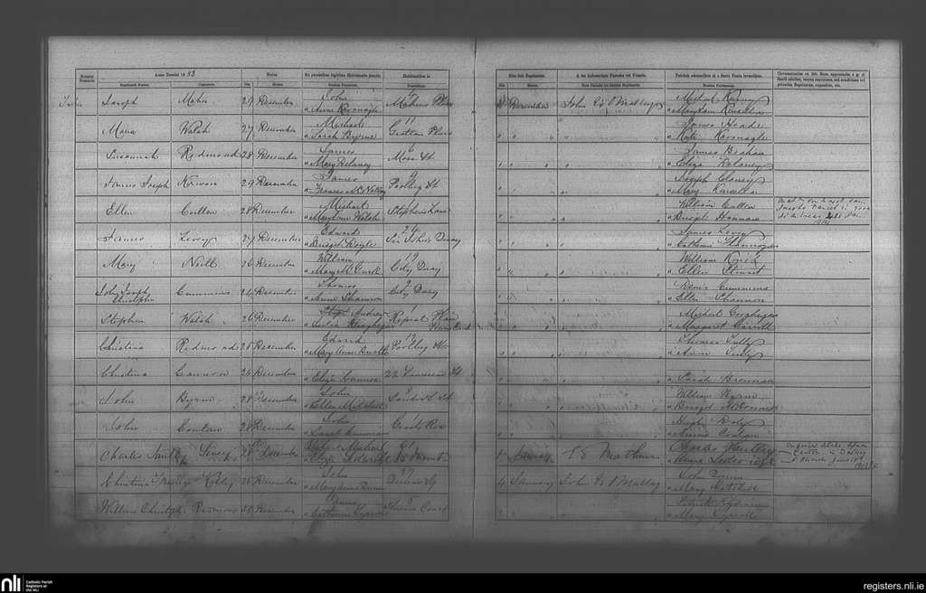 St. Andrew's, Dublin city; County of Dublin; Archdiocese of Dublin. Baptisms, Dec. 1883 to Jan. 1884