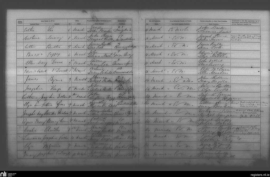 St. Andrew's, Dublin city; County of Dublin; Archdiocese of Dublin. Baptisms, Mar. 1884