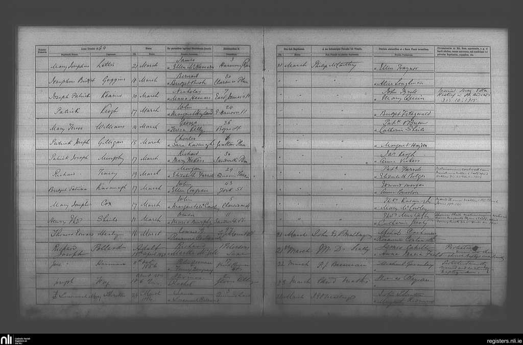 St. Andrew's, Dublin city; County of Dublin; Archdiocese of Dublin. Baptisms, Mar. 1884