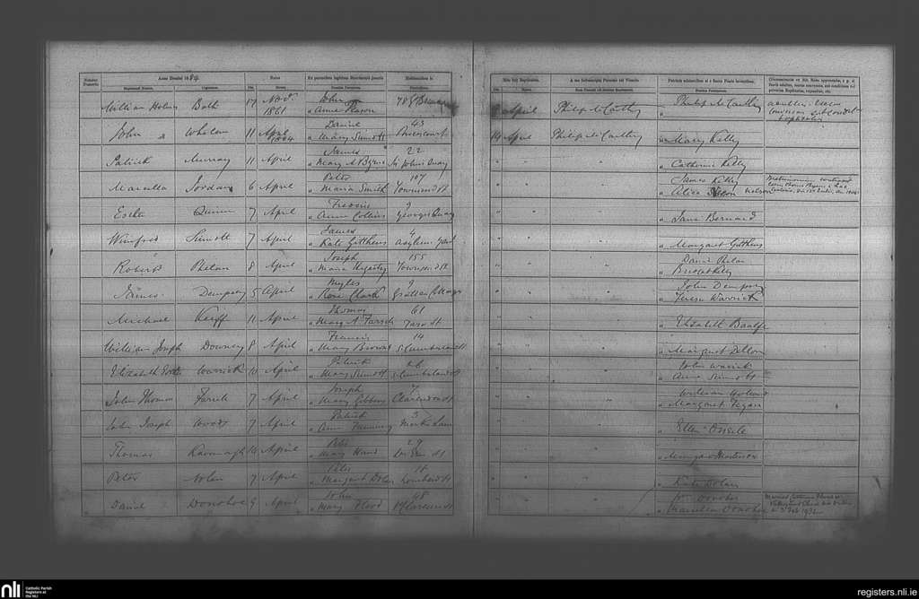 St. Andrew's, Dublin city; County of Dublin; Archdiocese of Dublin. Baptisms, Apr. 1884