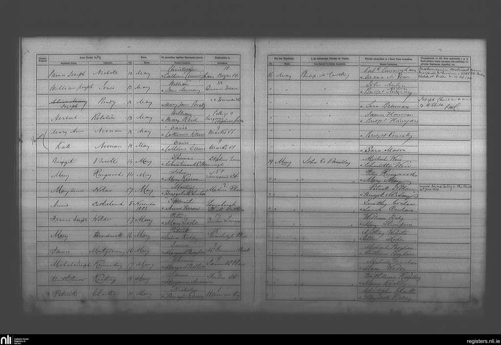 St. Andrew's, Dublin city; County of Dublin; Archdiocese of Dublin. Baptisms, May 1884