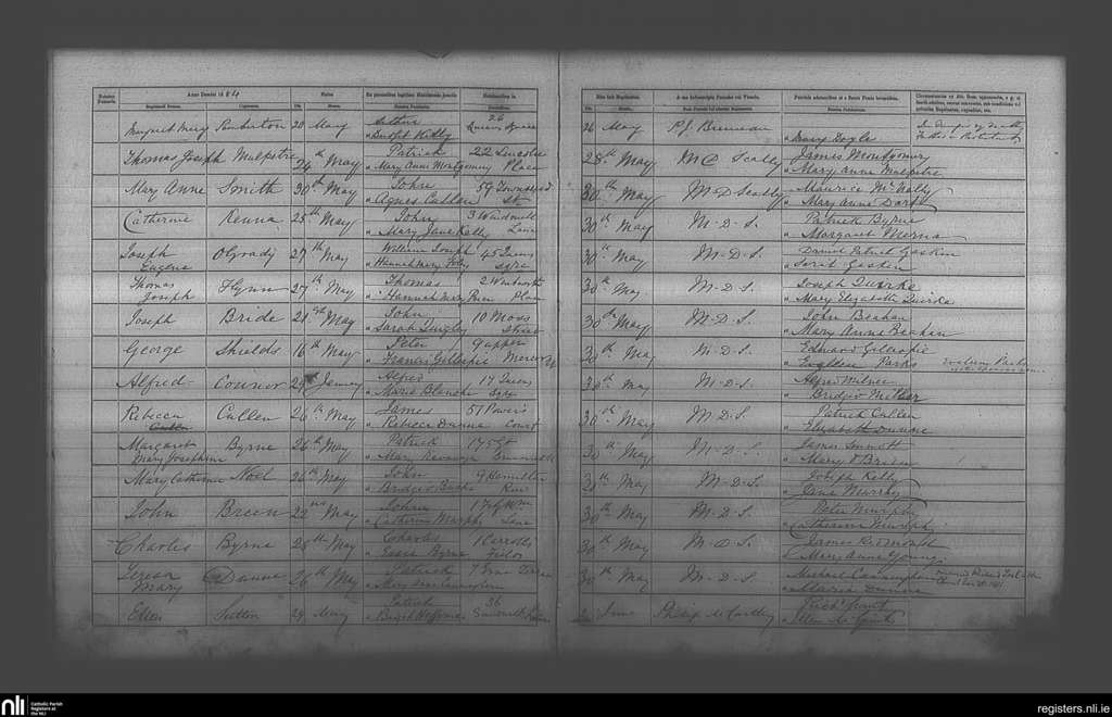 St. Andrew's, Dublin city; County of Dublin; Archdiocese of Dublin. Baptisms, May 1884 to June 1884