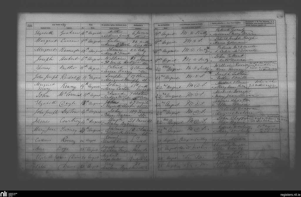 St. Andrew's, Dublin city; County of Dublin; Archdiocese of Dublin. Baptisms, Aug. 1884