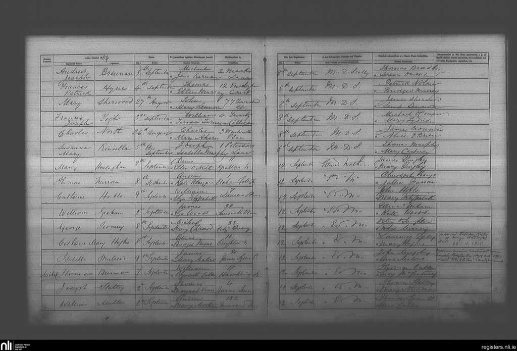 St. Andrew's, Dublin city; County of Dublin; Archdiocese of Dublin. Baptisms, Sep. 1884