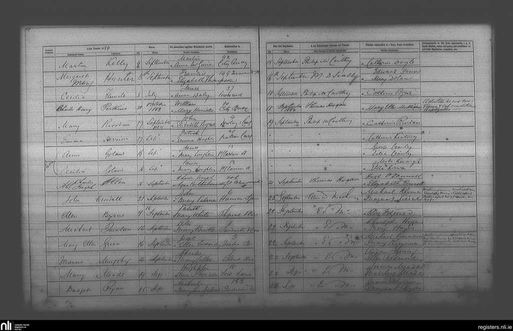 St. Andrew's, Dublin city; County of Dublin; Archdiocese of Dublin. Baptisms, Sep. 1884