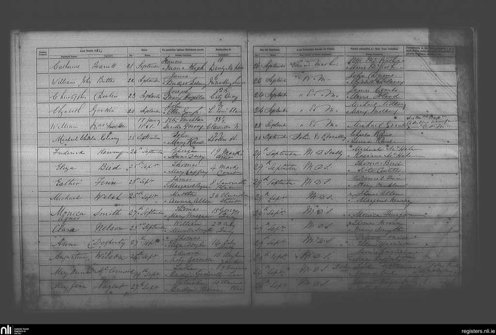 St. Andrew's, Dublin city; County of Dublin; Archdiocese of Dublin. Baptisms, Sep. 1884