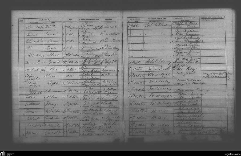 St. Andrew's, Dublin city; County of Dublin; Archdiocese of Dublin. Baptisms, Oct. 1884