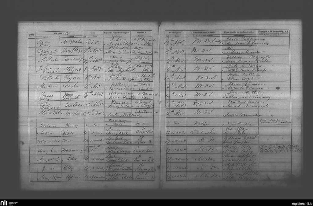 St. Andrew's, Dublin city; County of Dublin; Archdiocese of Dublin. Baptisms, Nov. 1884