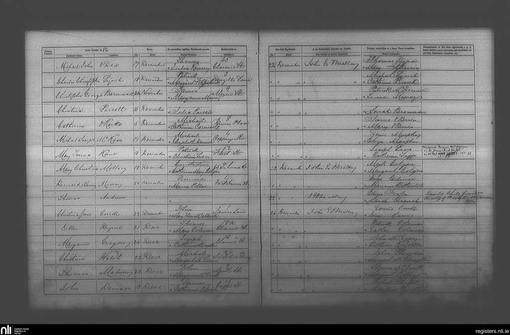 St. Andrew's, Dublin city; County of Dublin; Archdiocese of Dublin. Baptisms, Dec. 1884