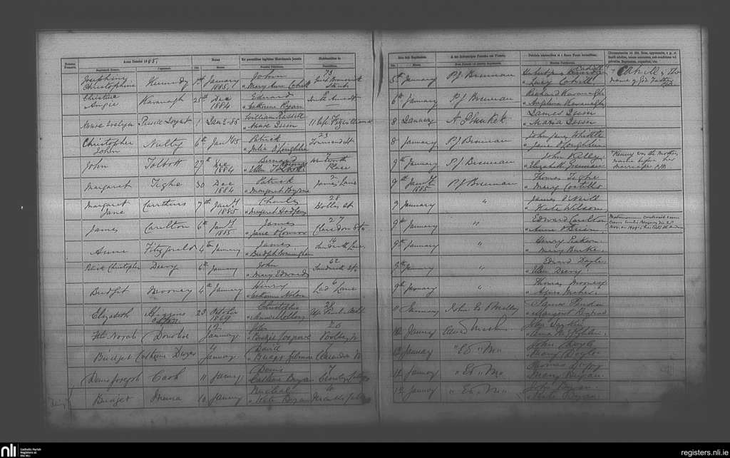 St. Andrew's, Dublin city; County of Dublin; Archdiocese of Dublin. Baptisms, Jan. 1885