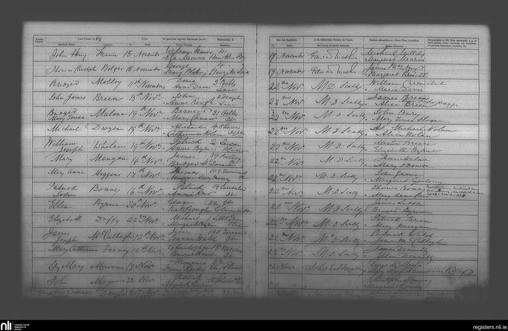 St. Andrew's, Dublin city; County of Dublin; Archdiocese of Dublin. Baptisms, Nov. 1886 to Dec. 1886