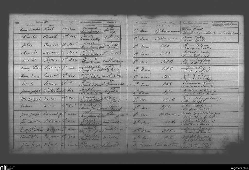 St. Andrew's, Dublin city; County of Dublin; Archdiocese of Dublin. Baptisms, Dec. 1886