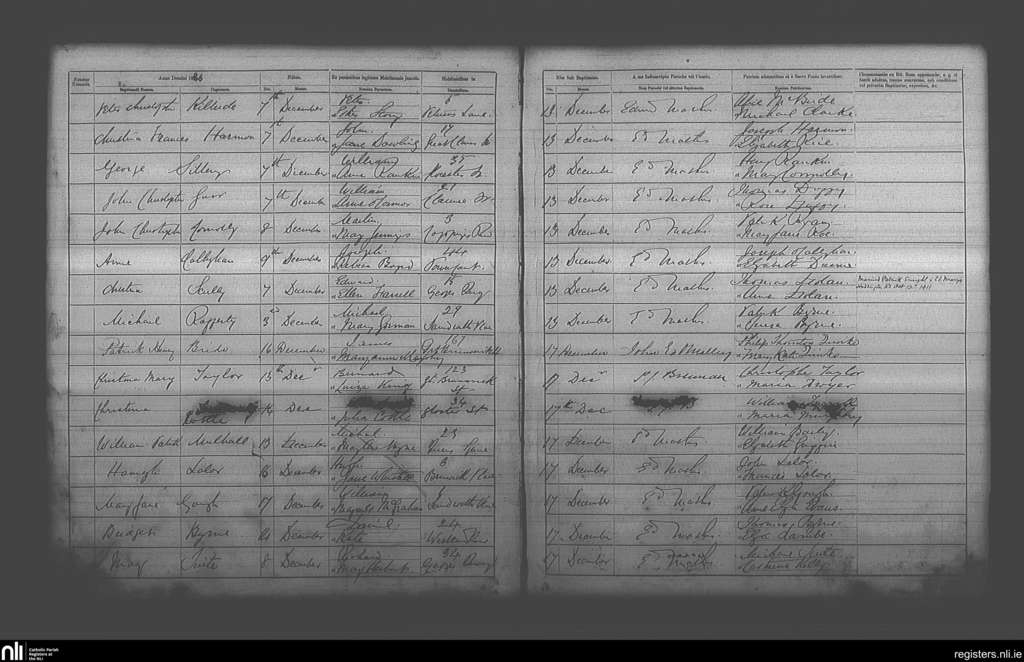 St. Andrew's, Dublin city; County of Dublin; Archdiocese of Dublin. Baptisms, Dec. 1886