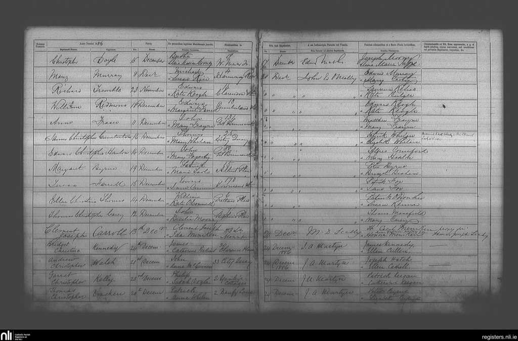 St. Andrew's, Dublin city; County of Dublin; Archdiocese of Dublin. Baptisms, Dec. 1886