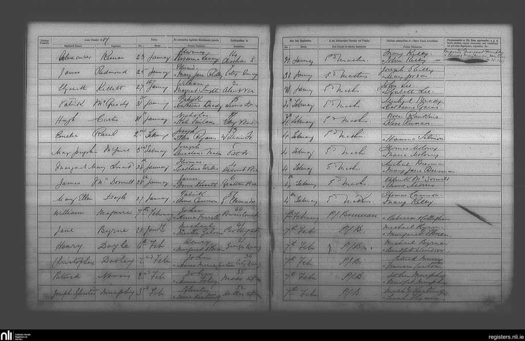 St. Andrew's, Dublin city; County of Dublin; Archdiocese of Dublin. Baptisms, Jan. 1887 to Feb. 1887