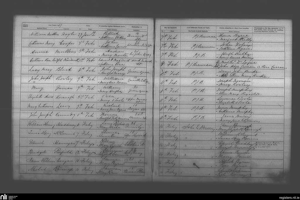 St. Andrew's, Dublin city; County of Dublin; Archdiocese of Dublin. Baptisms, Feb. 1887