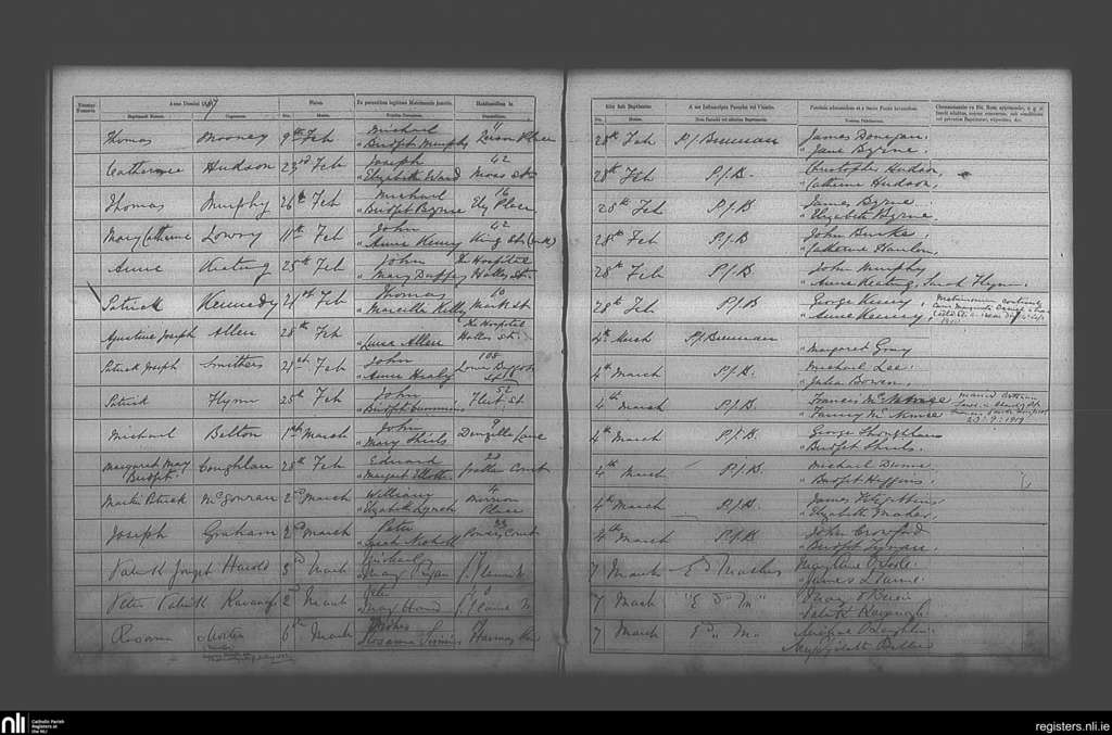 St. Andrew's, Dublin city; County of Dublin; Archdiocese of Dublin. Baptisms, Feb. 1887 to Mar. 1887