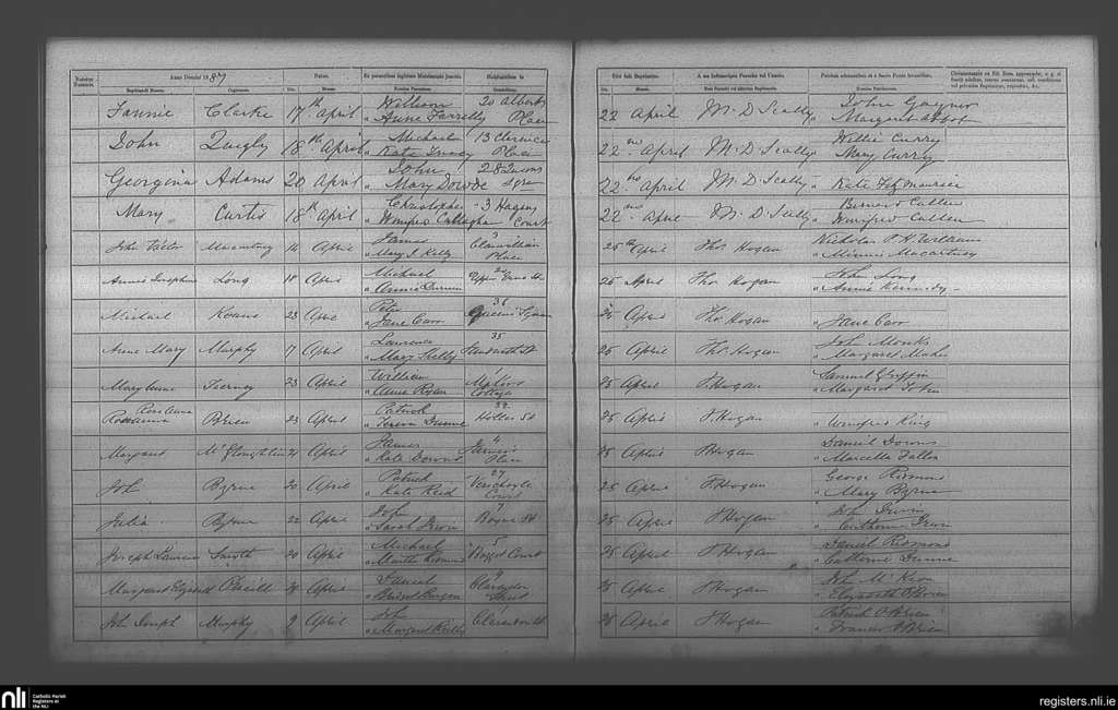 St. Andrew's, Dublin city; County of Dublin; Archdiocese of Dublin. Baptisms, Apr. 1887
