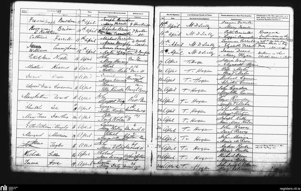 St. Andrew's, Dublin city; County of Dublin; Archdiocese of Dublin. Baptisms, Apr. 1889