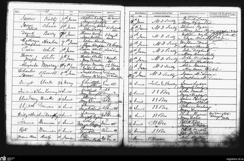 St. Andrew's, Dublin city; County of Dublin; Archdiocese of Dublin. Baptisms, June 1889