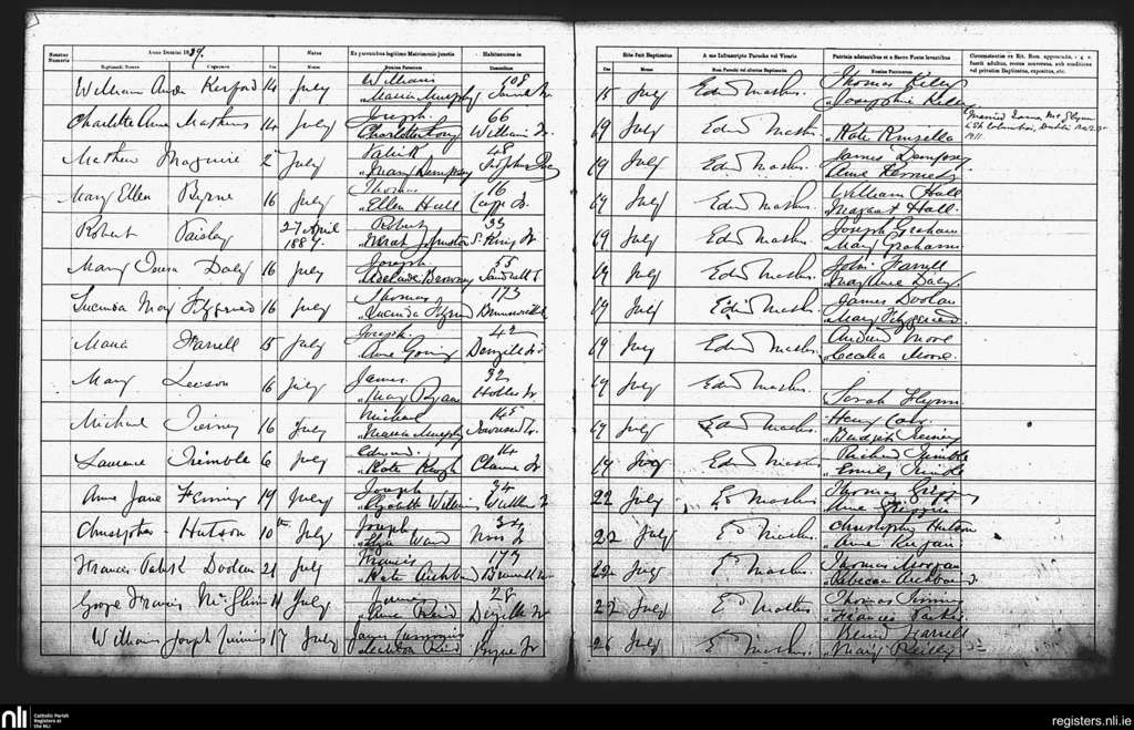St. Andrew's, Dublin city; County of Dublin; Archdiocese of Dublin. Baptisms, July 1889