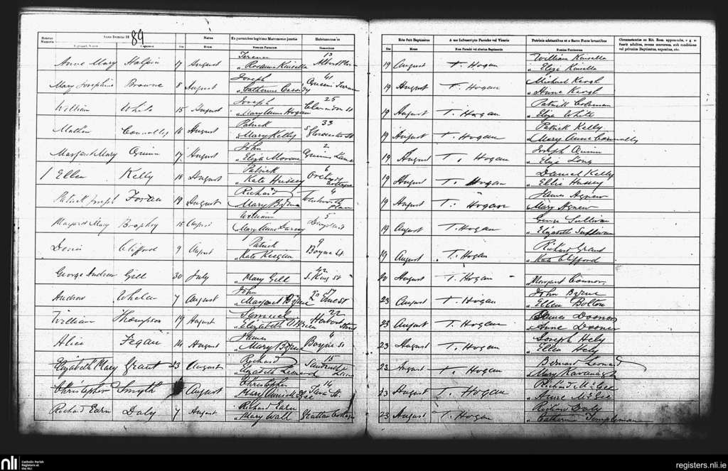 St. Andrew's, Dublin city; County of Dublin; Archdiocese of Dublin. Baptisms, Aug. 1889