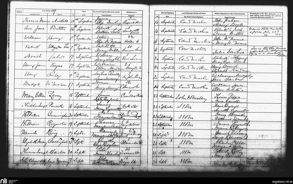 St. Andrew's, Dublin city; County of Dublin; Archdiocese of Dublin. Baptisms, Sep. 1889