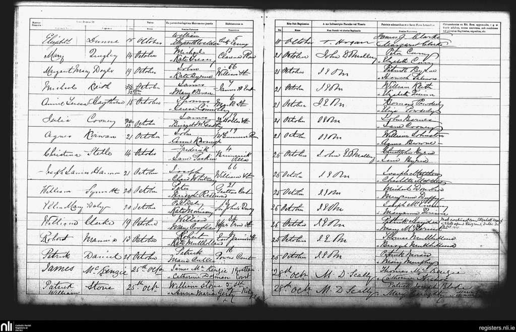 St. Andrew's, Dublin city; County of Dublin; Archdiocese of Dublin. Baptisms, Oct. 1889