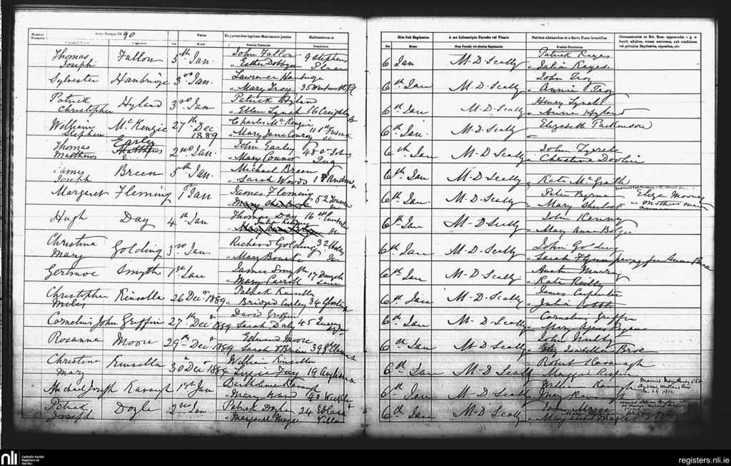 St. Andrew's, Dublin city; County of Dublin; Archdiocese of Dublin. Baptisms, Jan. 1890