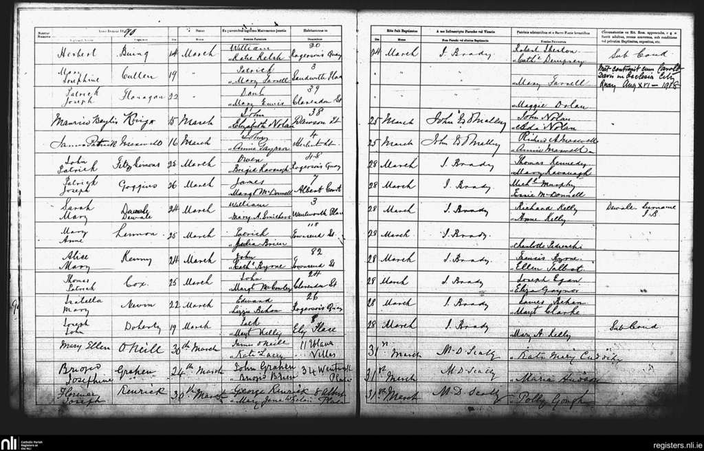 St. Andrew's, Dublin city; County of Dublin; Archdiocese of Dublin. Baptisms, Mar. 1890