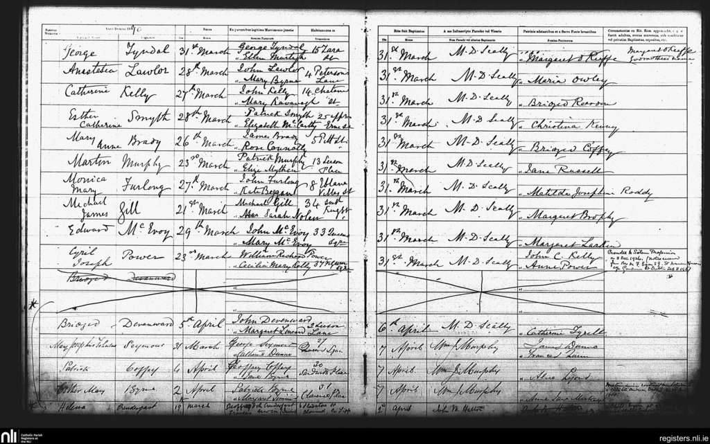 St. Andrew's, Dublin city; County of Dublin; Archdiocese of Dublin. Baptisms, Mar. 1890 to Apr. 1890