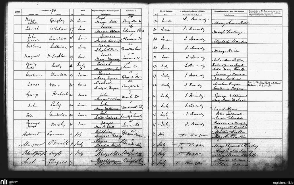 St. Andrew's, Dublin city; County of Dublin; Archdiocese of Dublin. Baptisms, June 1890 to July 1890