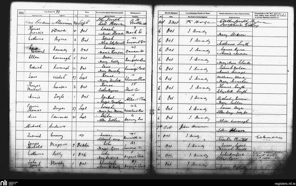 St. Andrew's, Dublin city; County of Dublin; Archdiocese of Dublin. Baptisms, Oct. 1890