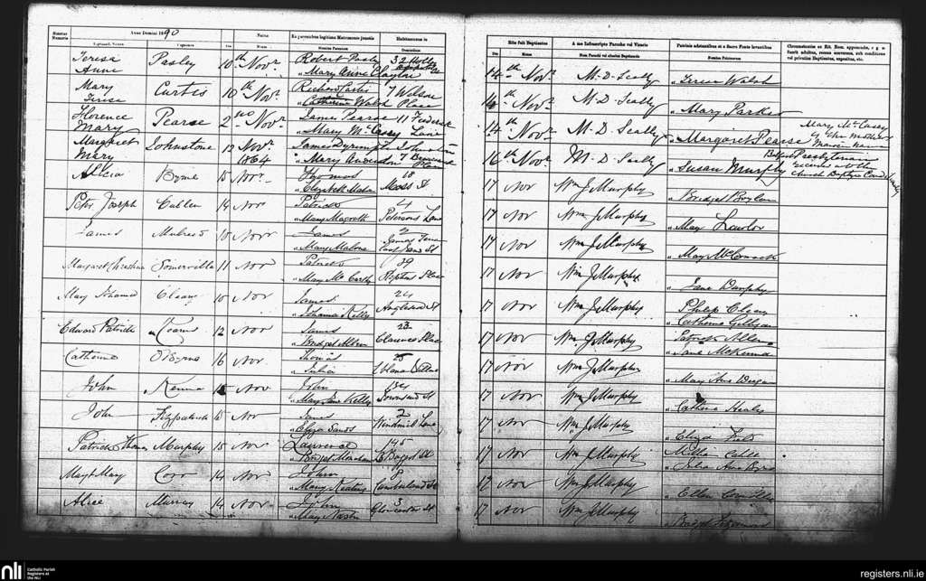 St. Andrew's, Dublin city; County of Dublin; Archdiocese of Dublin. Baptisms, Nov. 1890