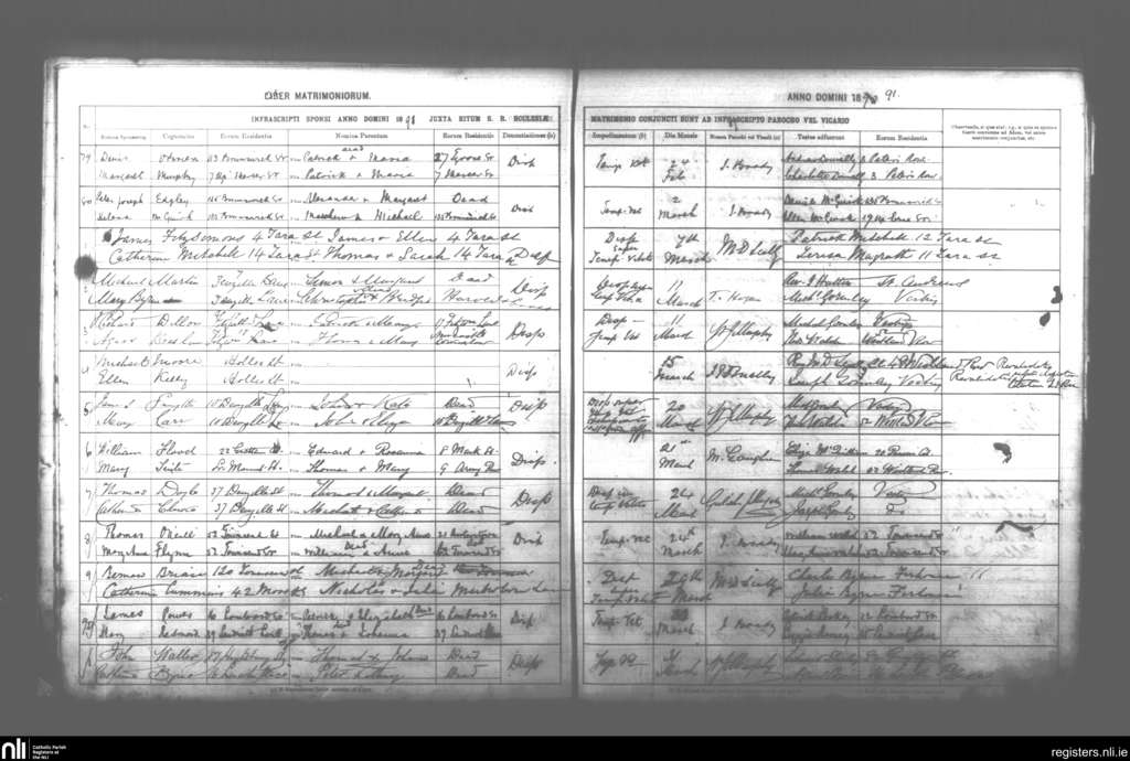 St. Andrew's, Dublin city; County of Dublin; Archdiocese of Dublin. Marriages, Feb. 1891 to Mar. 1891