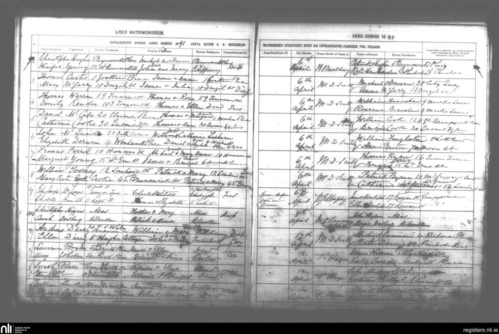 St. Andrew's, Dublin city; County of Dublin; Archdiocese of Dublin. Marriages, Apr. 1891