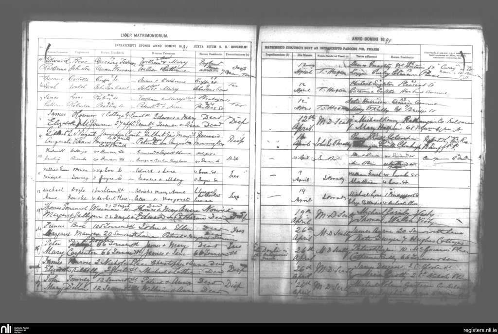 St. Andrew's, Dublin city; County of Dublin; Archdiocese of Dublin. Marriages, Apr. 1891