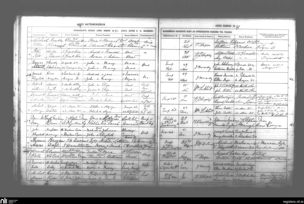 St. Andrew's, Dublin city; County of Dublin; Archdiocese of Dublin. Marriages, Nov. 1891 to Jan. 1892