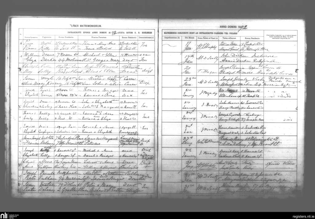 St. Andrew's, Dublin city; County of Dublin; Archdiocese of Dublin. Marriages, Jan. 1892