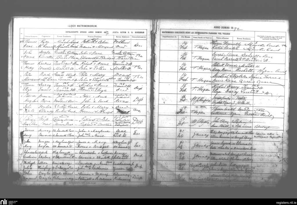 St. Andrew's, Dublin city; County of Dublin; Archdiocese of Dublin. Marriages, Feb. 1892