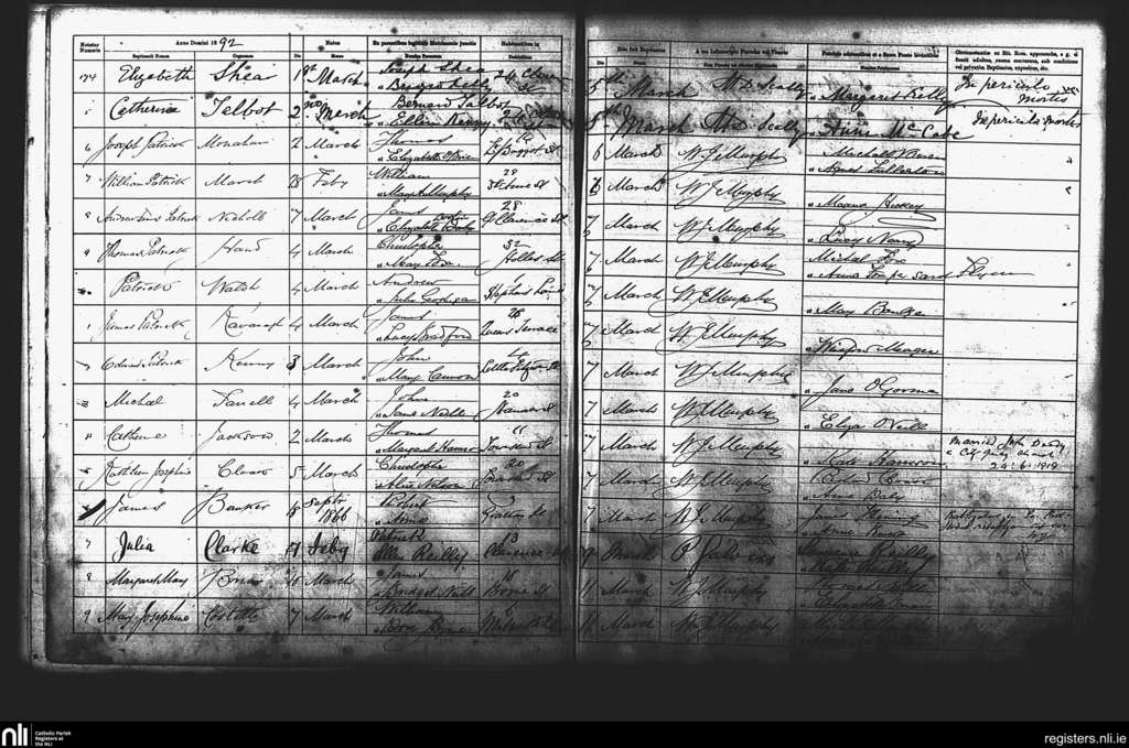 St. Andrew's, Dublin city; County of Dublin; Archdiocese of Dublin. Baptisms, Mar. 1892