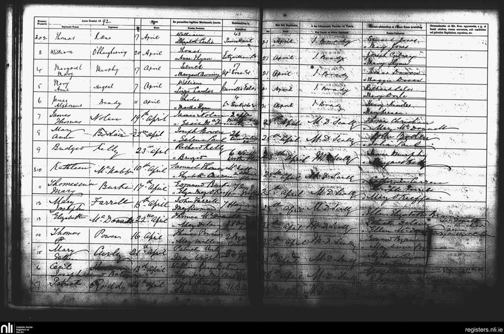 St. Andrew's, Dublin city; County of Dublin; Archdiocese of Dublin. Baptisms, Apr. 1892
