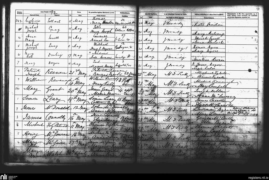 St. Andrew's, Dublin city; County of Dublin; Archdiocese of Dublin. Baptisms, May 1892