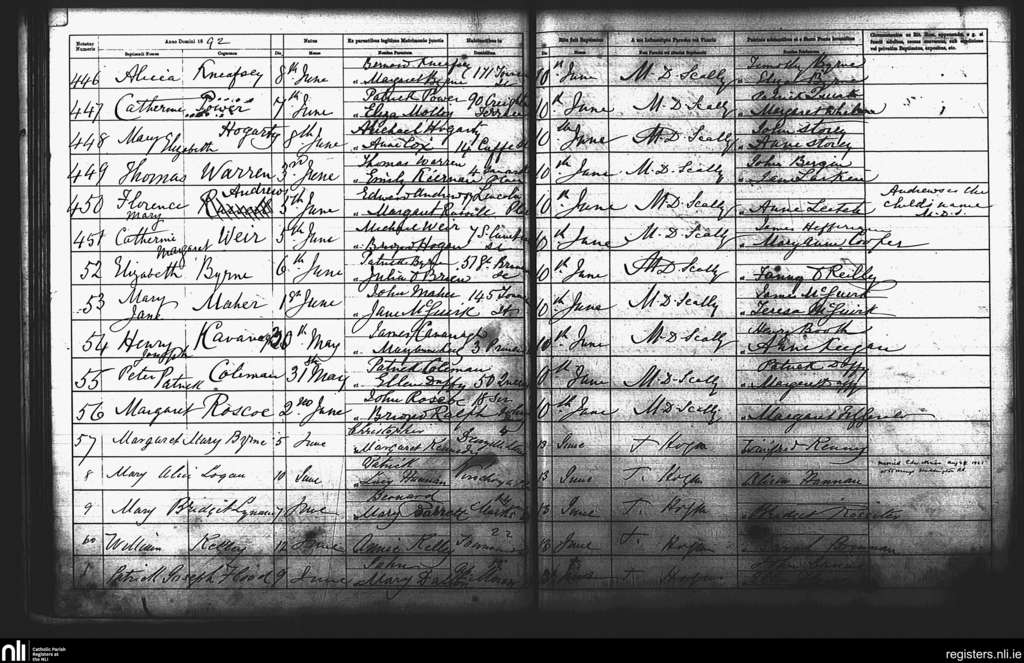 St. Andrew's, Dublin city; County of Dublin; Archdiocese of Dublin. Baptisms, June 1892