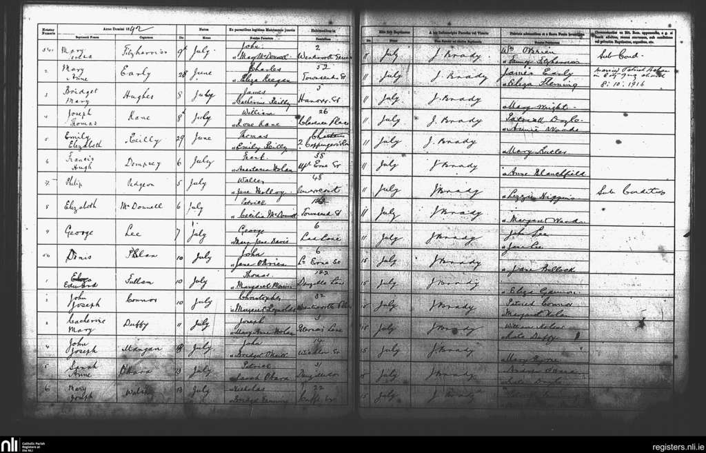 St. Andrew's, Dublin city; County of Dublin; Archdiocese of Dublin. Baptisms, July 1892