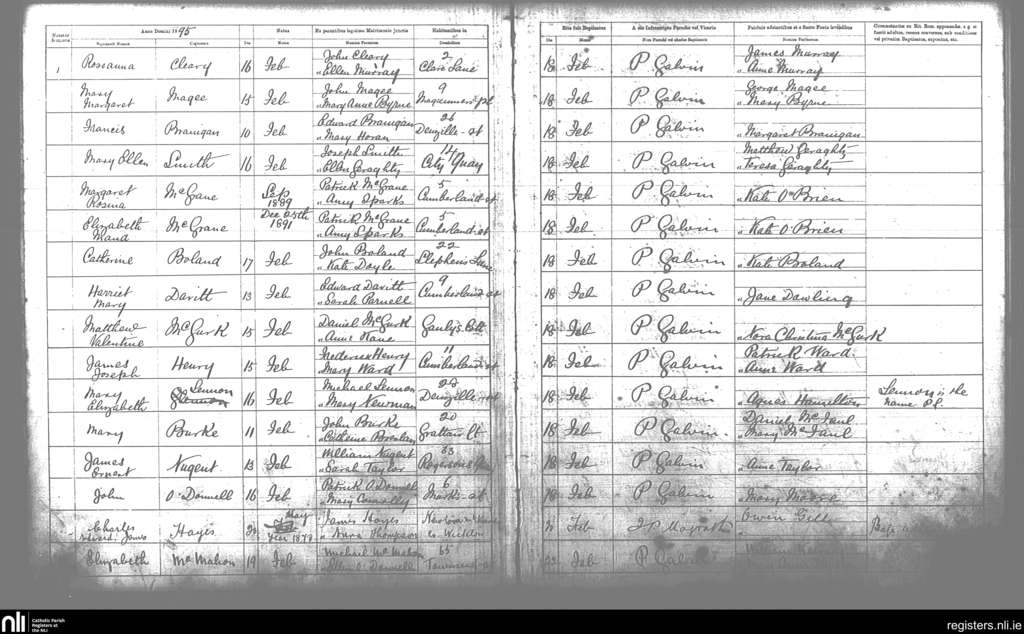 St. Andrew's, Dublin city; County of Dublin; Archdiocese of Dublin. Baptisms, Feb. 1895