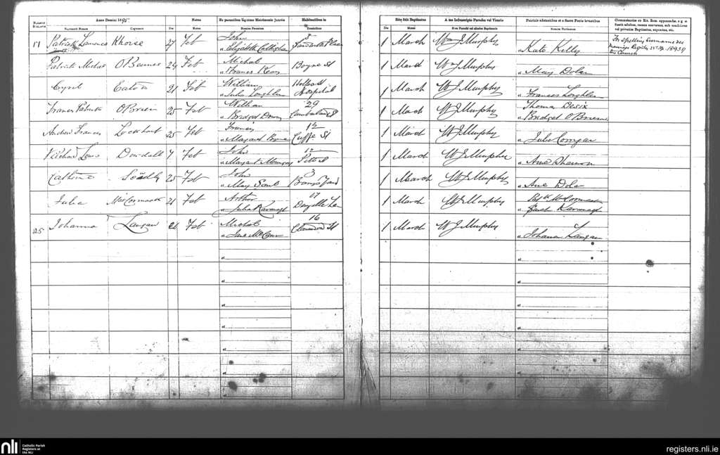 St. Andrew's, Dublin city; County of Dublin; Archdiocese of Dublin. Baptisms, Mar. 1895