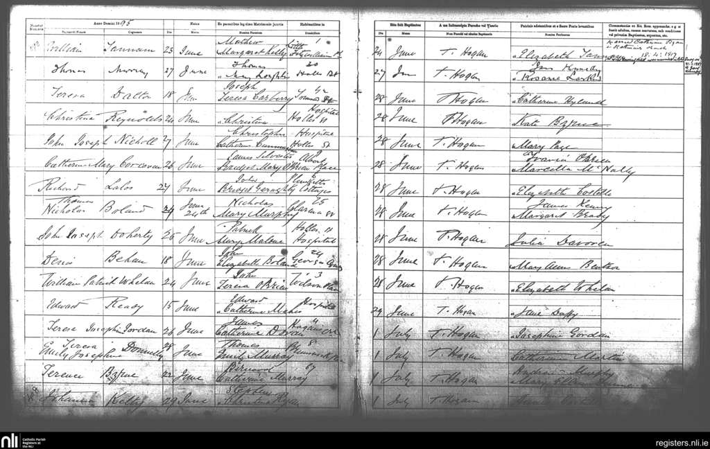 St. Andrew's, Dublin city; County of Dublin; Archdiocese of Dublin. Baptisms, June 1895 to July 1895