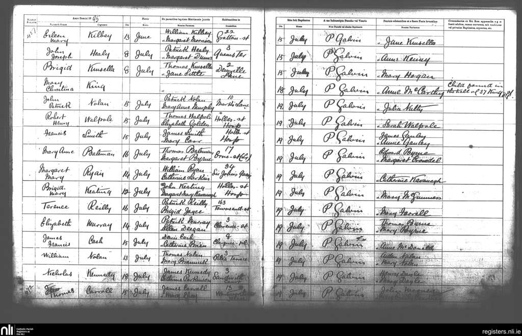 St. Andrew's, Dublin city; County of Dublin; Archdiocese of Dublin. Baptisms, July 1895