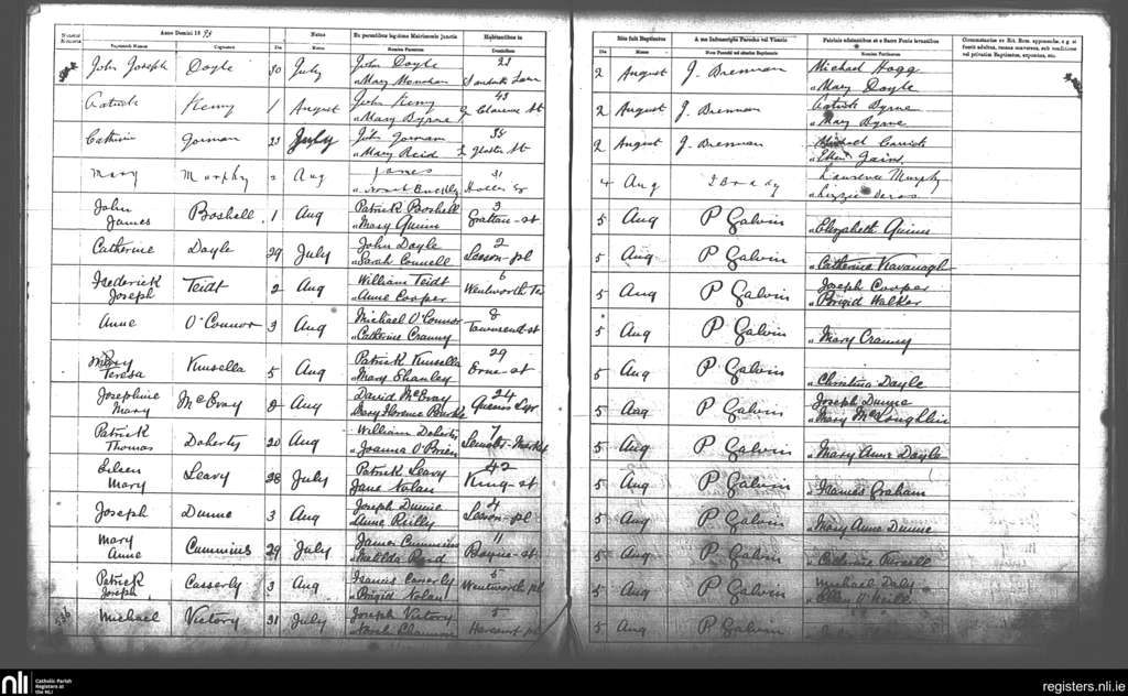 St. Andrew's, Dublin city; County of Dublin; Archdiocese of Dublin. Baptisms, Aug. 1895